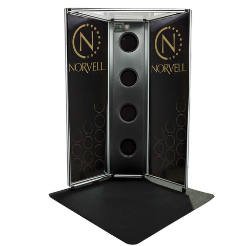 The Norvell Overspray Reduction Booth offers superior performance and aesthetics to the discerning salon offering customers a premium spay tanning experience. This beautiful system utilizes an overspray mist extraction system, comprised of 4 high-capacity fans. The extraction fans pull excess solution away from your client and into the Overspray Reduction Filtration System.